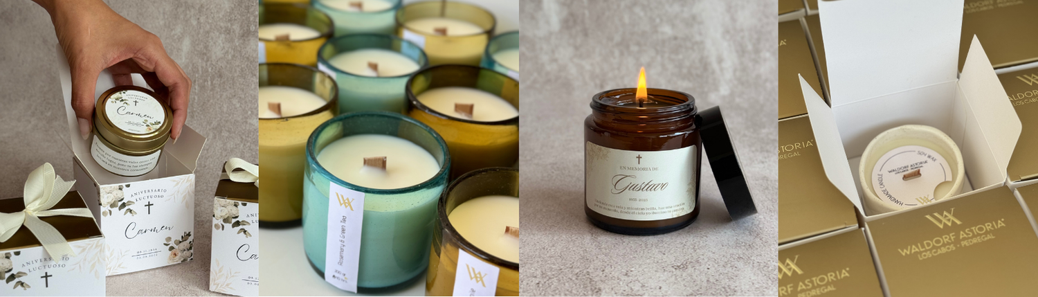 Diseñamos velas exclusivas que se adaptan al estilo de tu evento o la identidad de tu marca, perfectas como recuerdos u obsequios especiales.