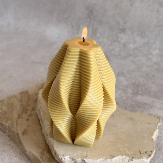 Ambas. Funcionan como pieza decorativa y también pueden encenderse. Al encenderlas su forma cambia de manera natural, creando un efecto visual único.