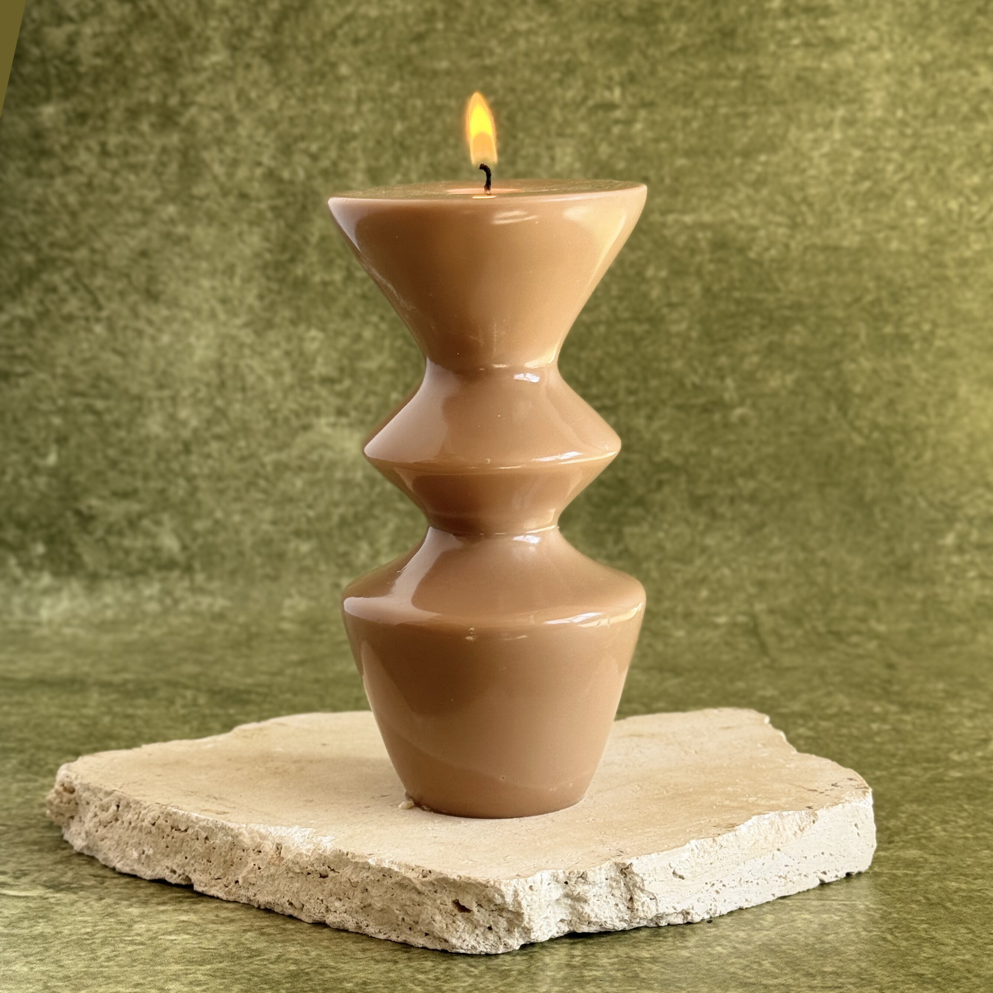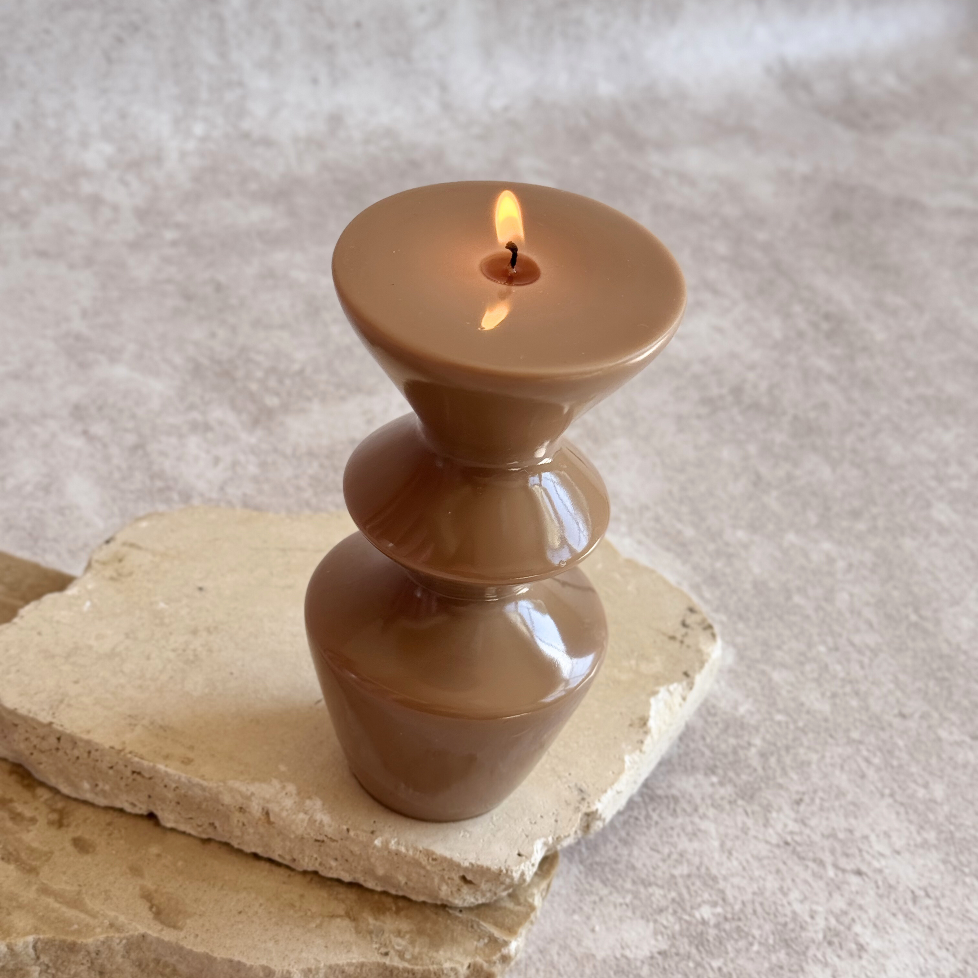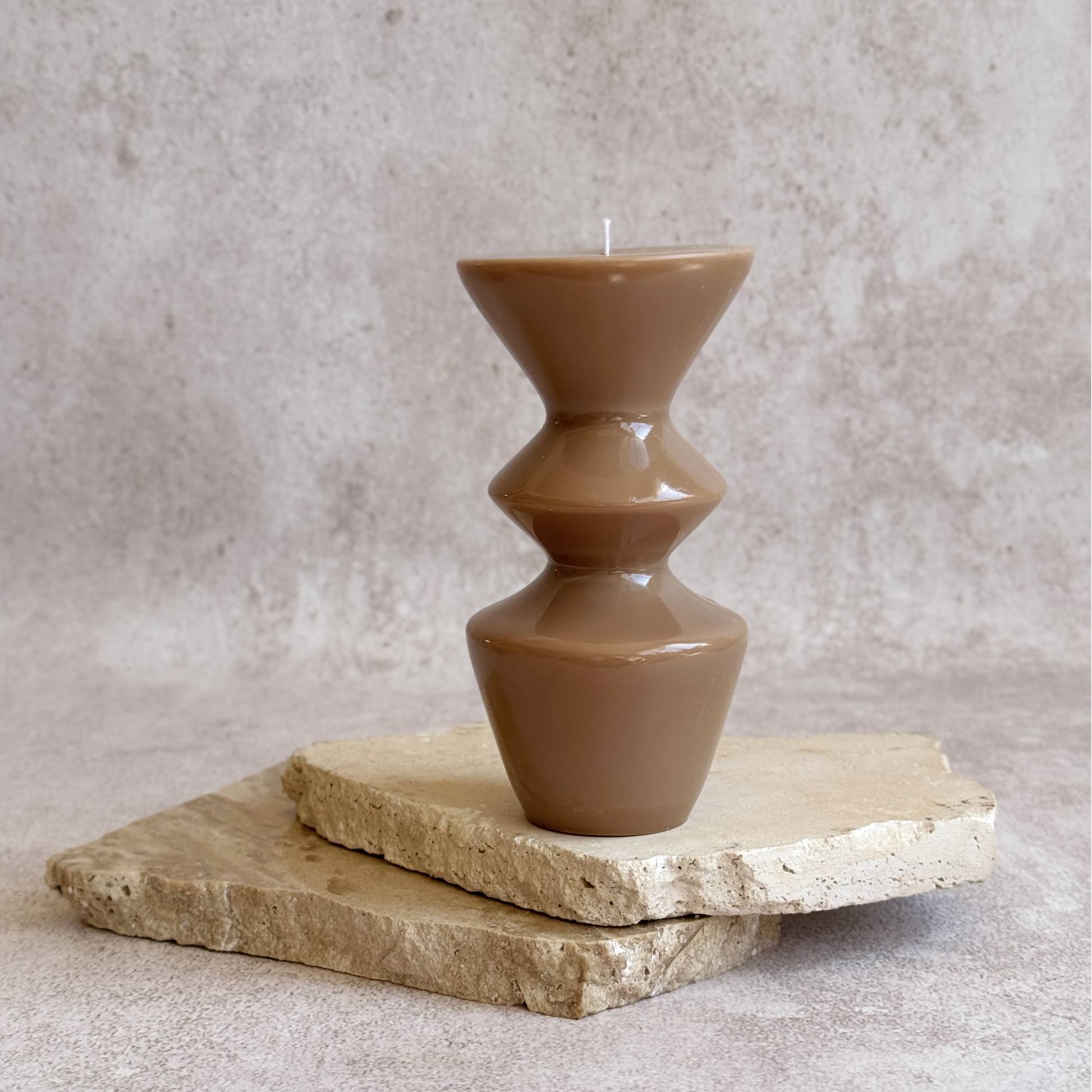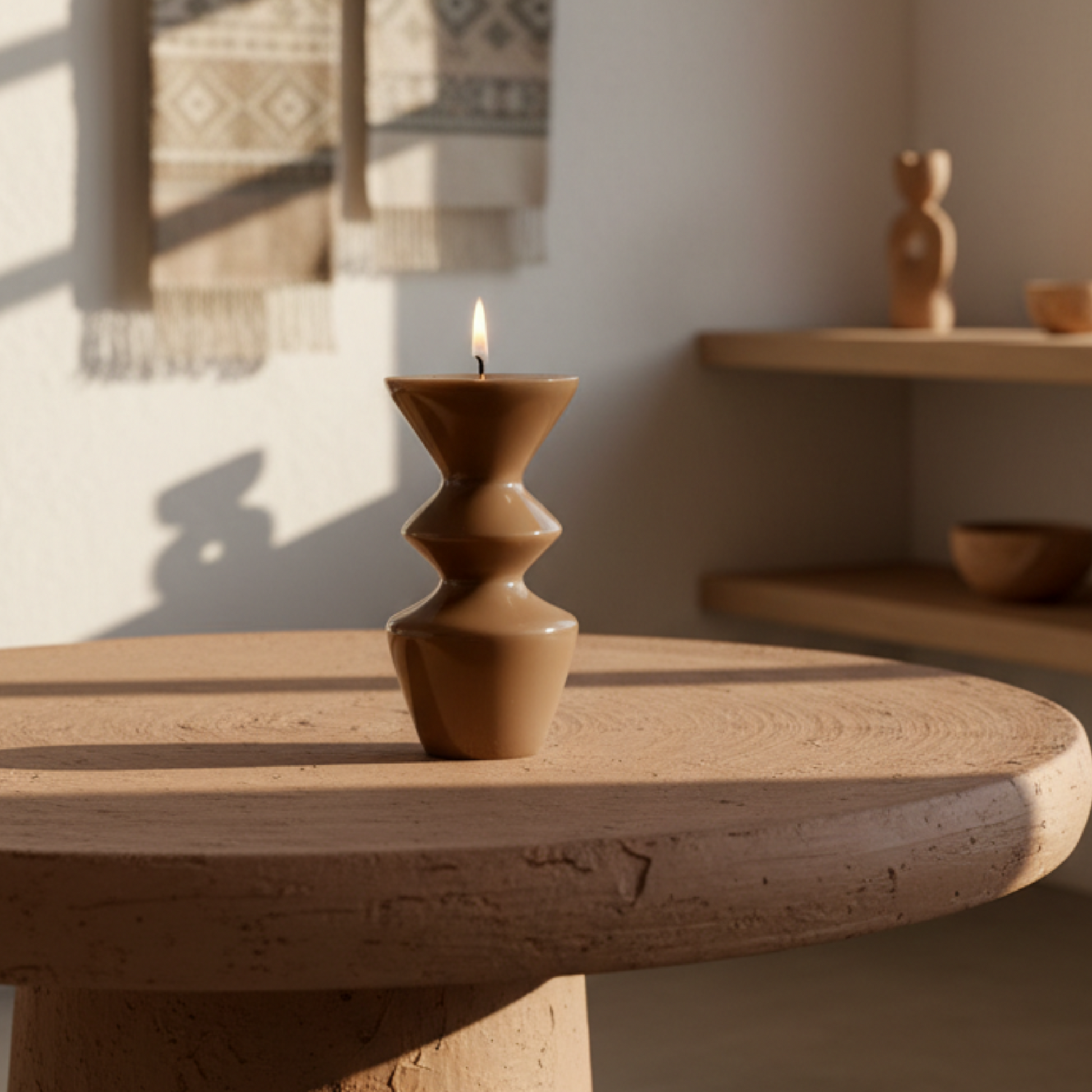 Aura es una vela escultural de forma circular ondulada que crea sombras delicadas y aporta equilibrio visual a cualquier espacio. Su silueta orgánica transmite calma y textura sin necesidad de encenderla.