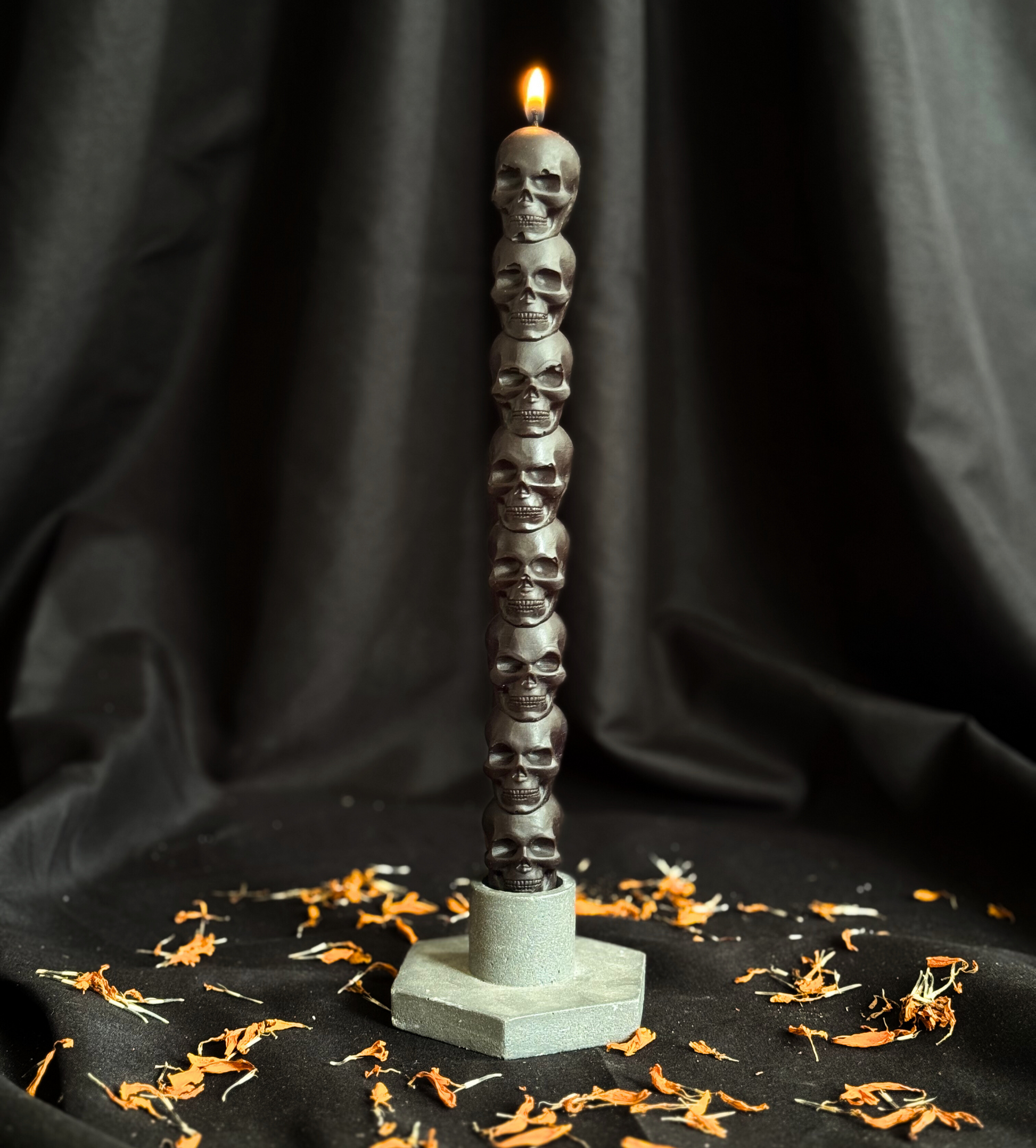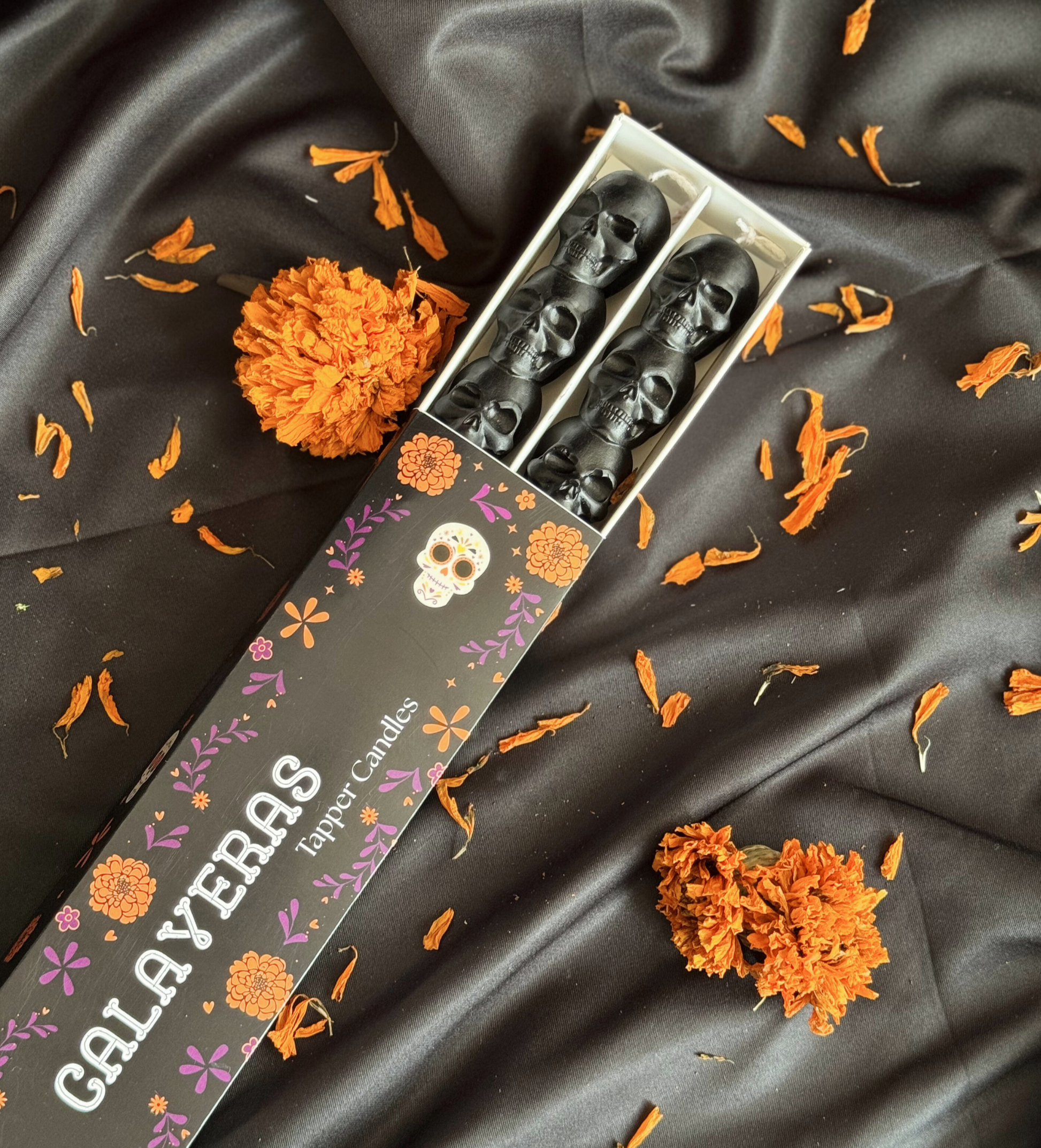 Son velas elegantes y alargadas, inspiradas en la esencia del Día de Muertos, evocan la memoria y la celebración de la vida.