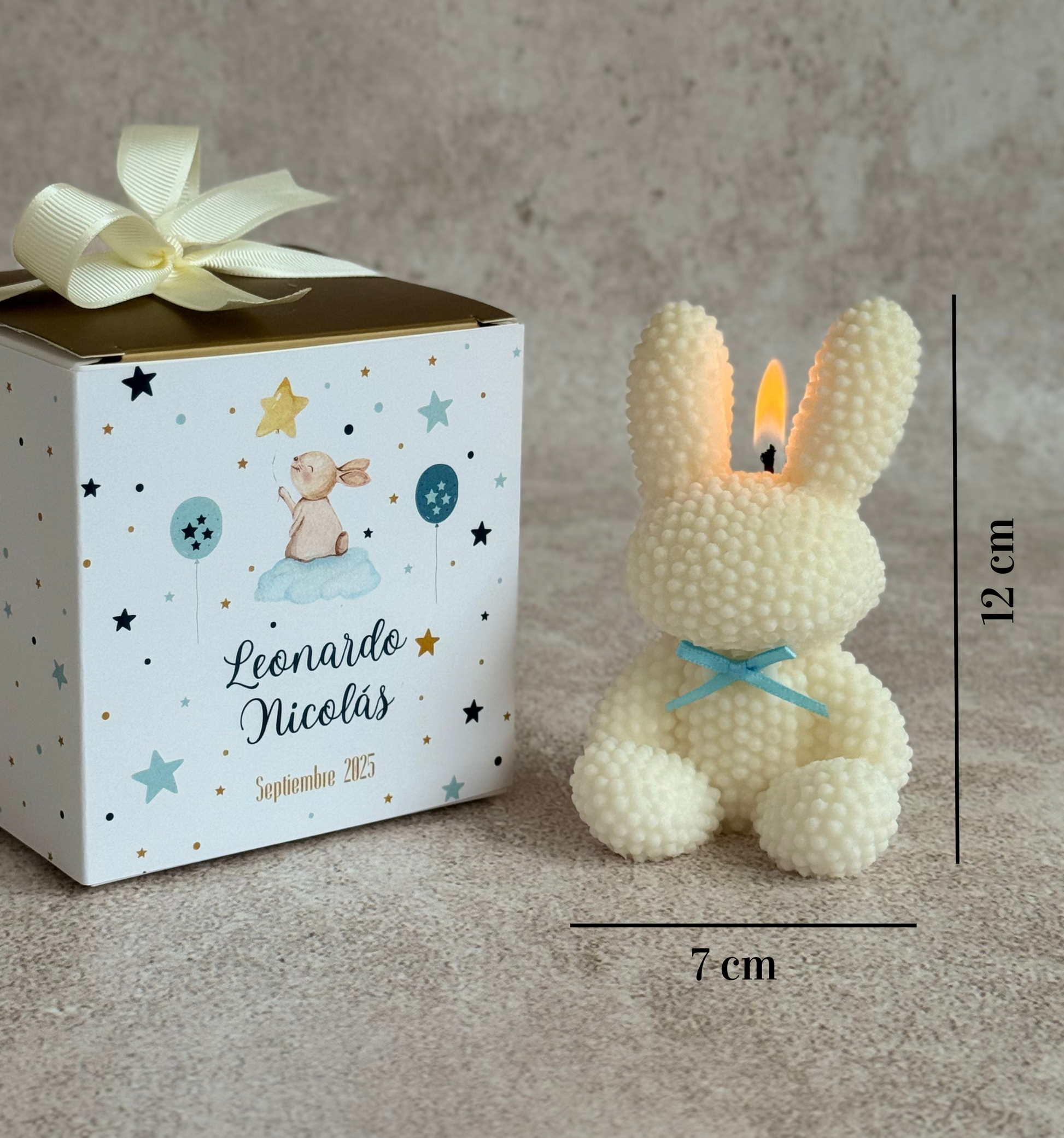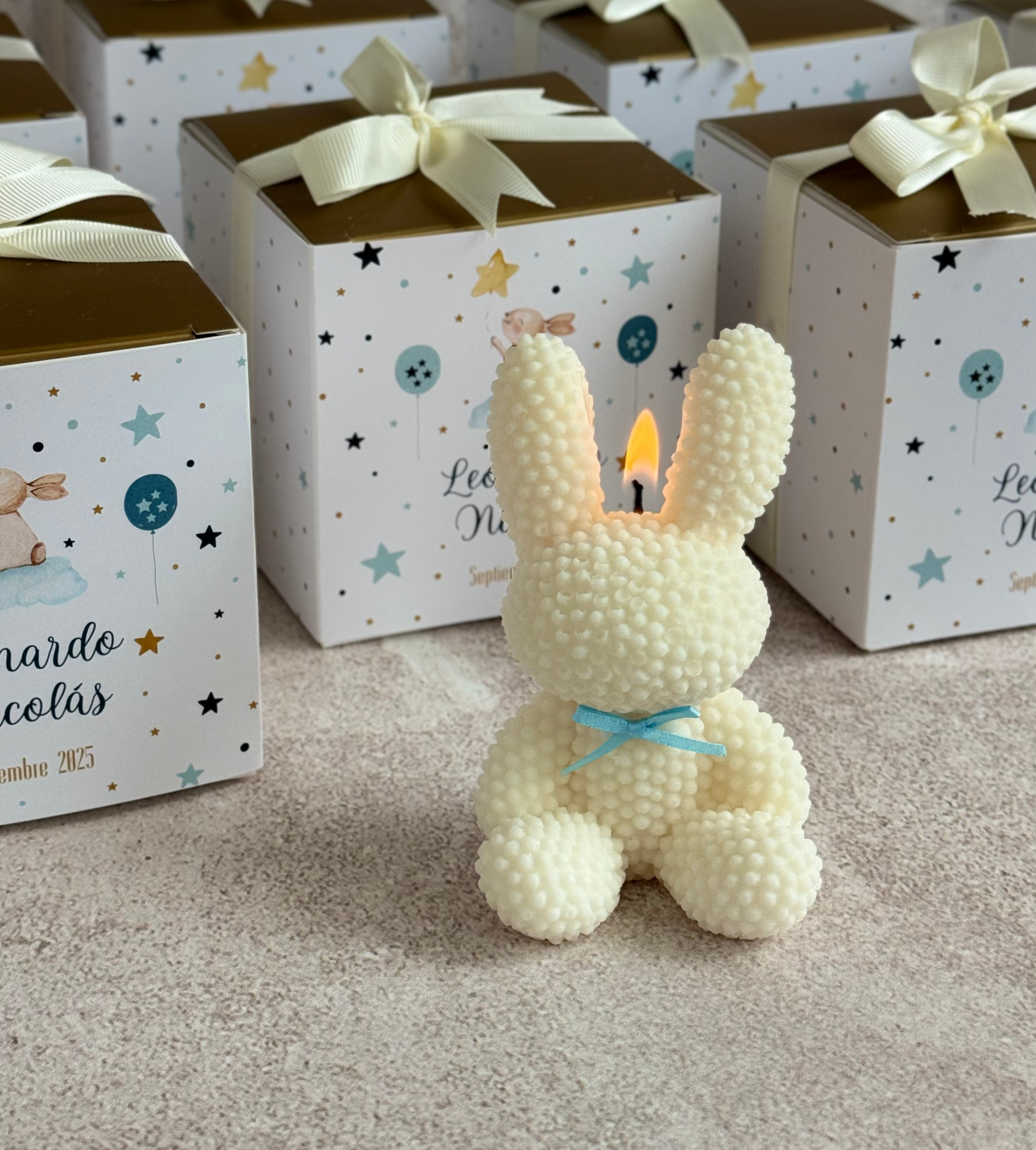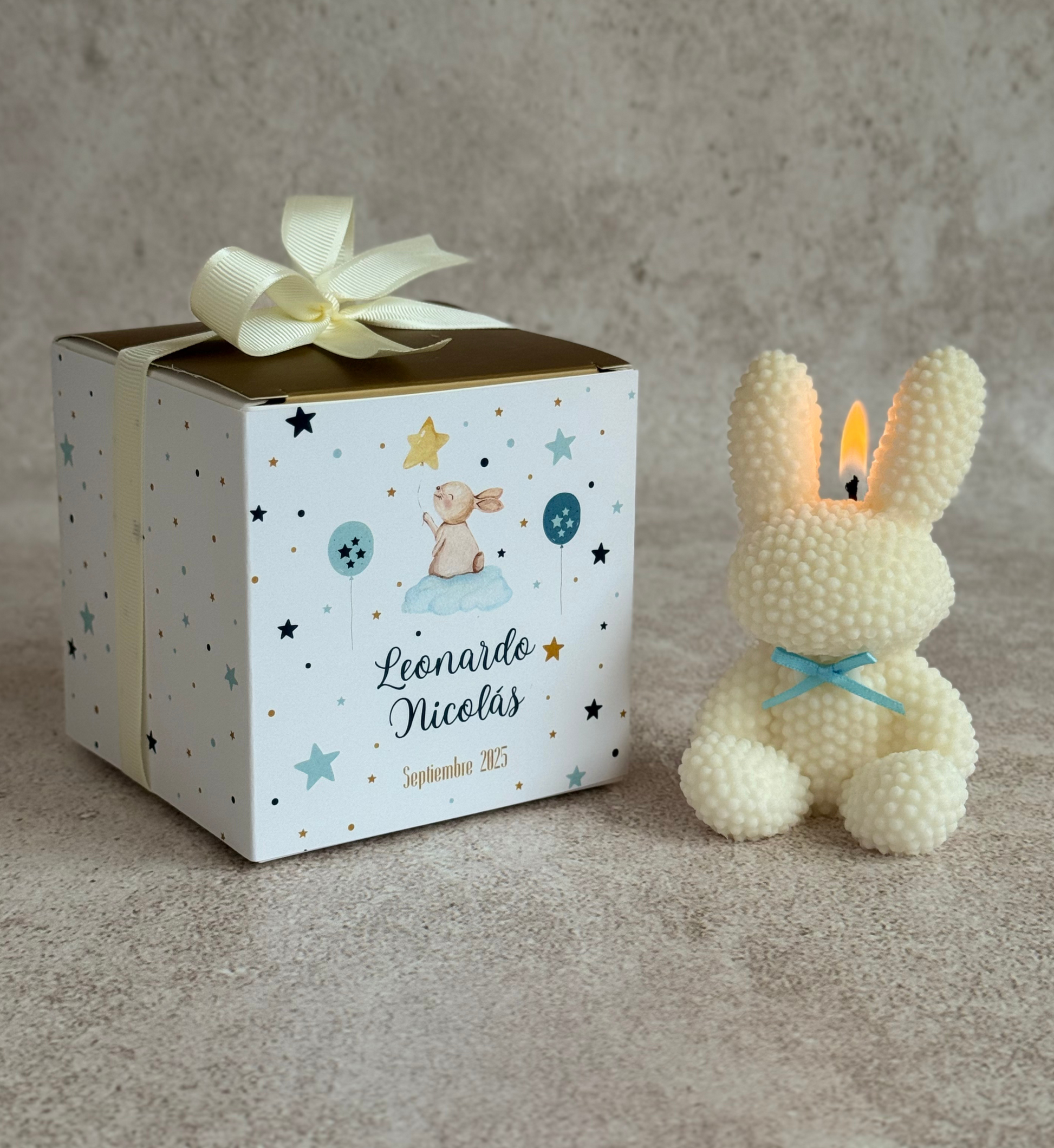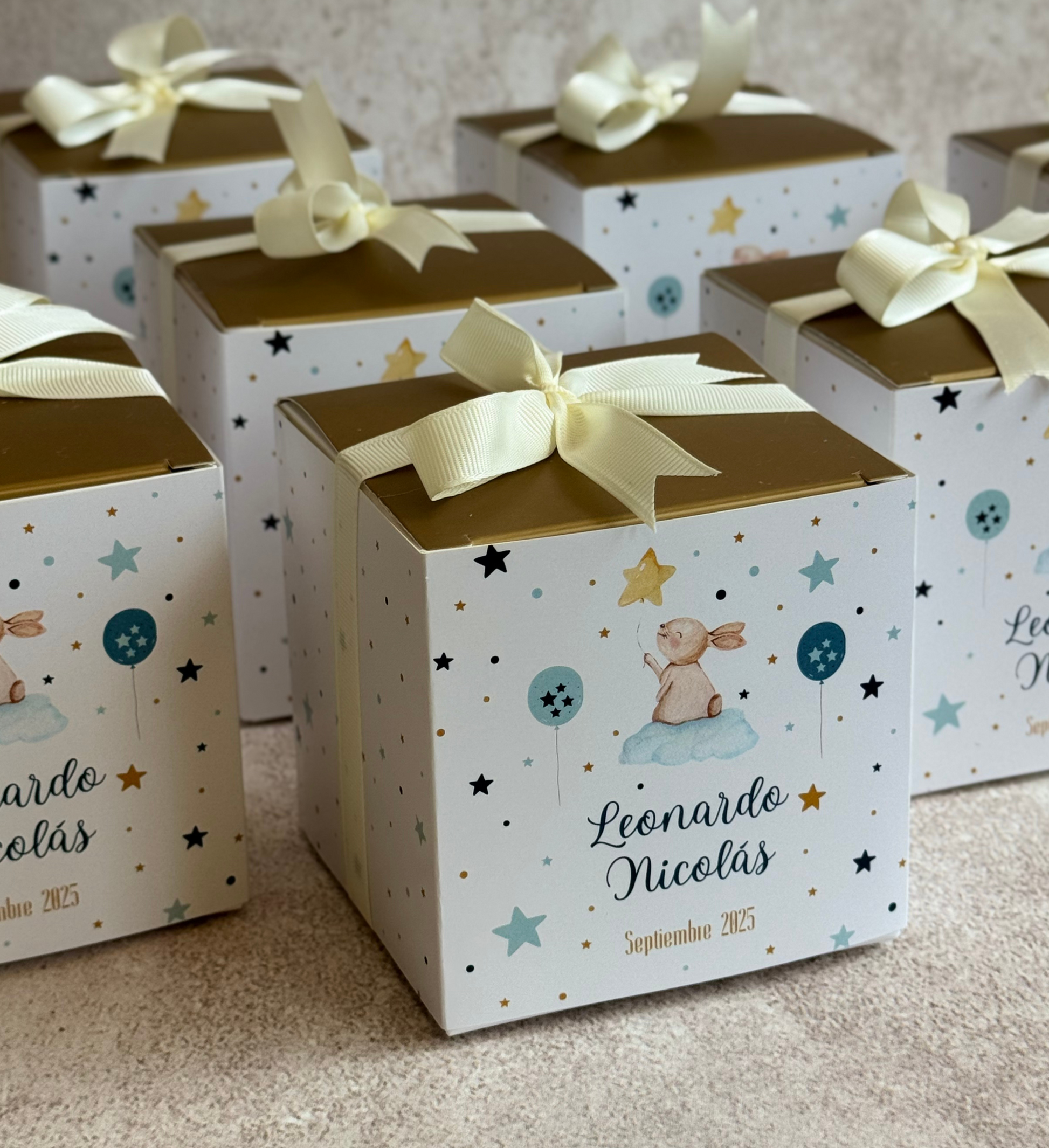 -Vela con aroma, moño en vela, diseño de empaque personalizado (caja 10x10x10cm) y listón.