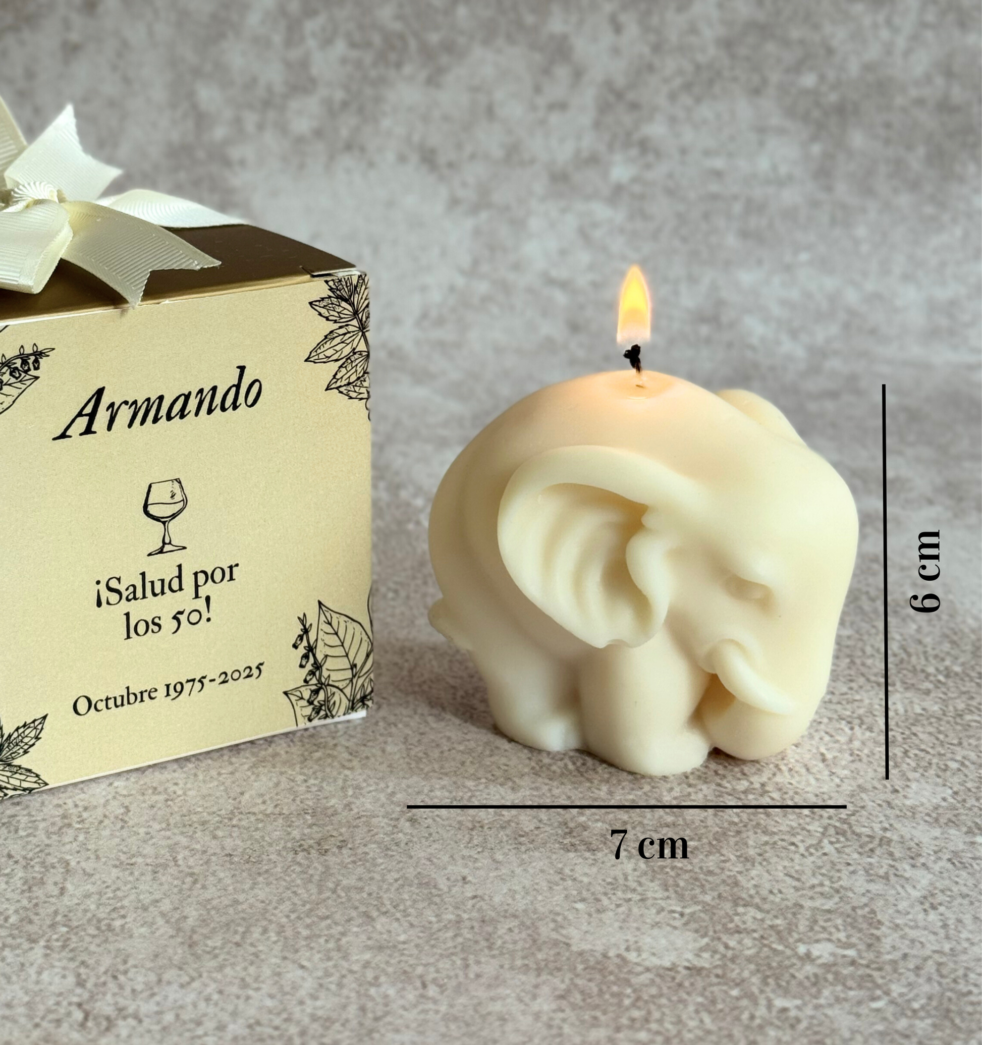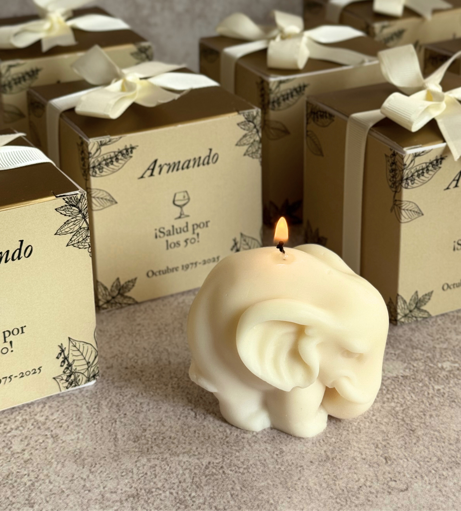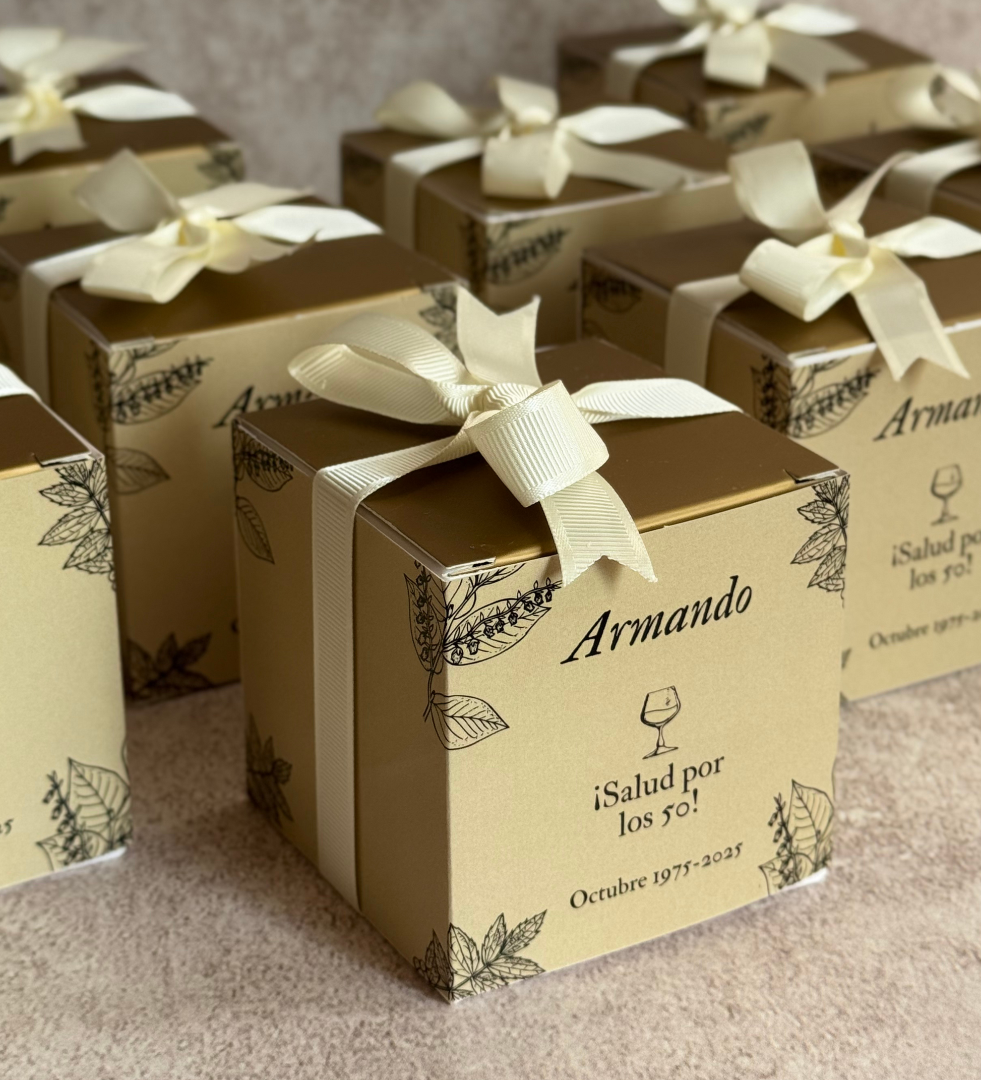 -Vela con aroma, diseño de empaque personalizado (caja 8x8x8cm) y listón.